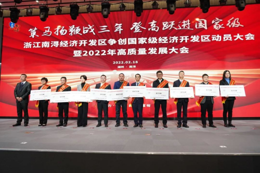 去年,浙江南潯經(jīng)濟開發(fā)區(qū)以新發(fā)展理念引領高質量發(fā)展,開拓進取,攻堅克難,取得了優(yōu)異成績,并涌現(xiàn)了一批優(yōu)秀企業(yè)和科技人才,為推動經(jīng)濟社會高質量發(fā)展作出了突出貢獻。為鼓勵先進、樹立典型,2022年2月18日,浙江南潯經(jīng)濟開發(fā)區(qū)爭創(chuàng)國家級經(jīng)濟開發(fā)區(qū)動員大會暨2022年高質量發(fā)展大會盛大召開,會上,中共浙江南潯經(jīng)濟開發(fā)區(qū)委員會、浙江南潯經(jīng)濟開發(fā)區(qū)管理委員會表彰了2021年度優(yōu)秀企業(yè)和科技人才。
